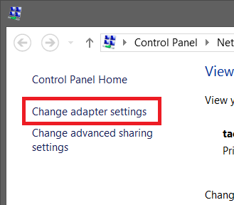 - Click Change Adapter Settings on the left-hand side of the screen.