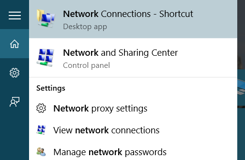 - Open the Start menu and begin typing Network and Sharing Center. A pane should appear on the side of the screen.