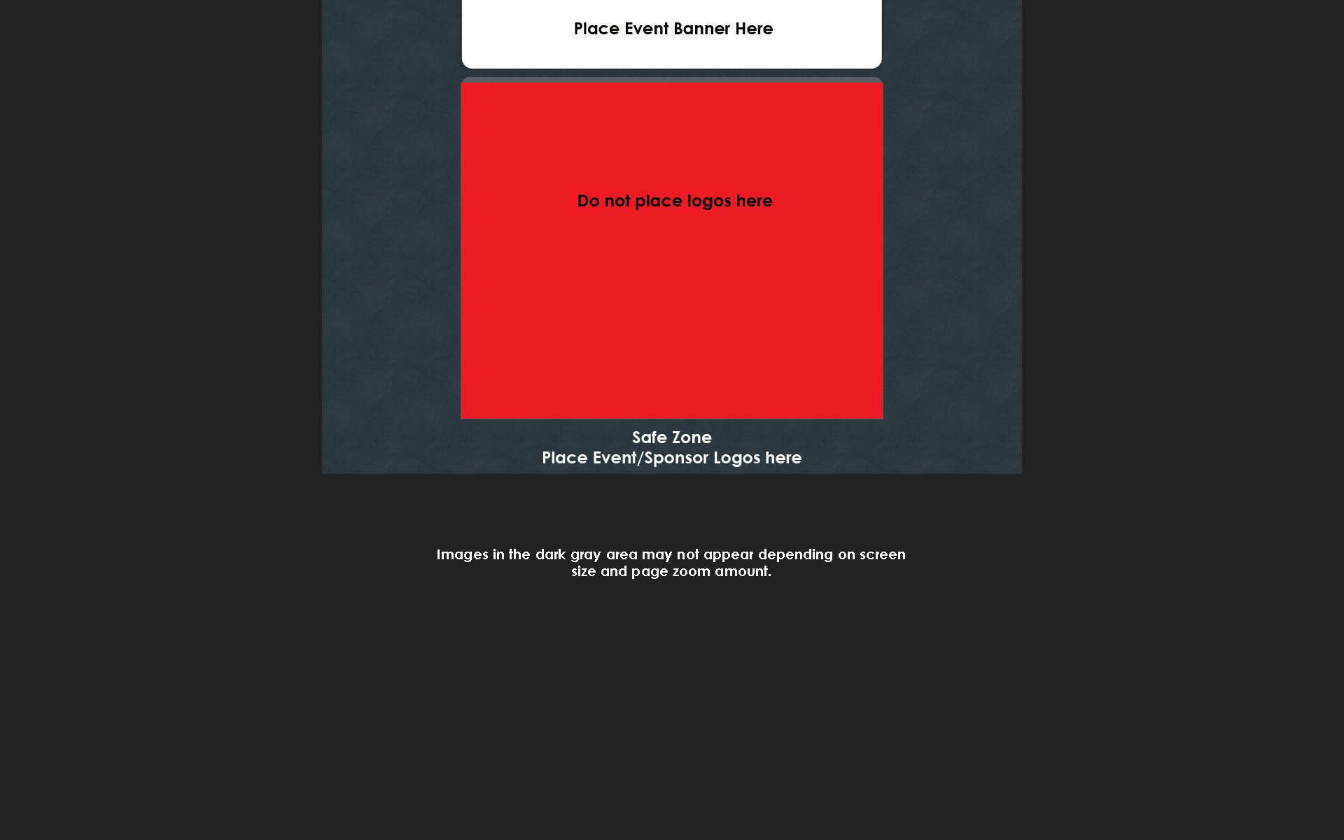 The Web Registration Background, Results Background, Event Site Kiosk Background, and Online Header Image however require special attention. Because of the possibility of different screen sizes and browser zoom levels, logos placed in background images may not appear or will appear cut off.