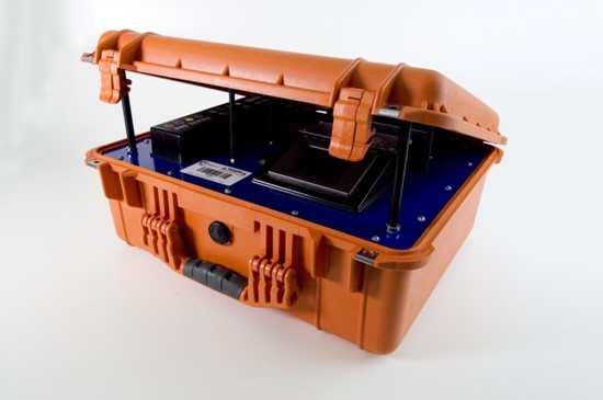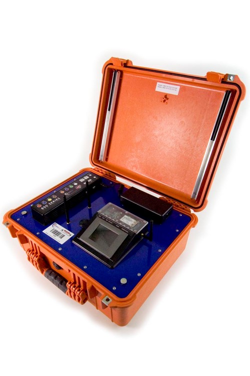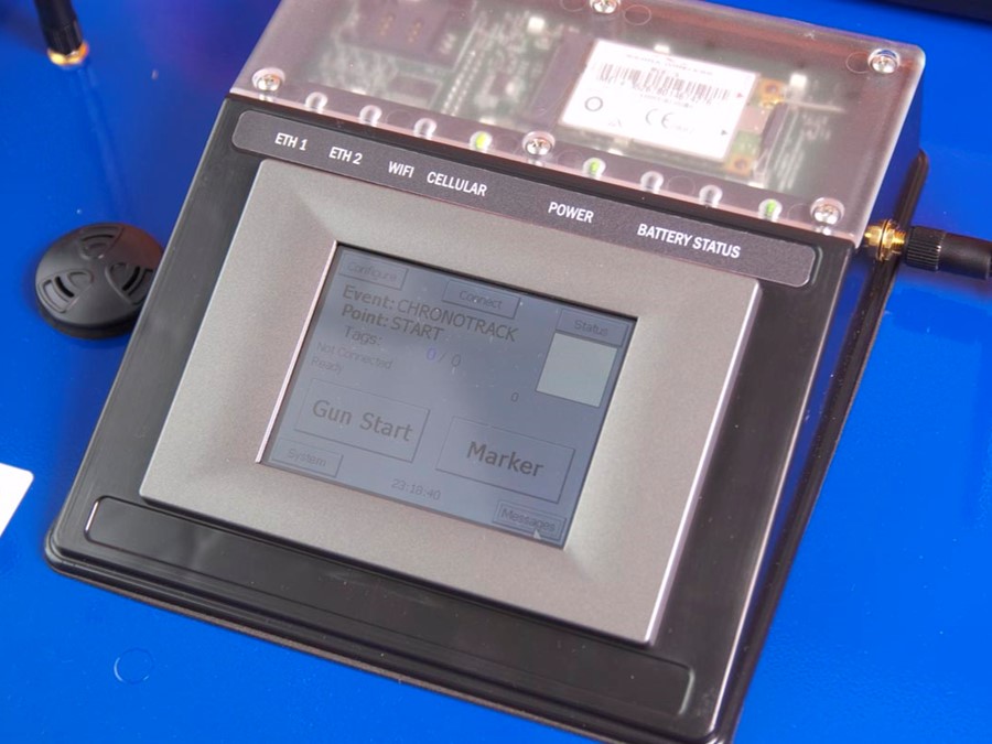 The Pro Series Controller is the first Controller mass-produced by ChronoTrack. It is encased in a rugged Pelican case and features a touch screen display, two-port Ethernet switch, built-in WiFi modem, built-in GPRS (Cellular) Modem, two powered USB ports, internal battery power, auxiliary power port, and AC power.