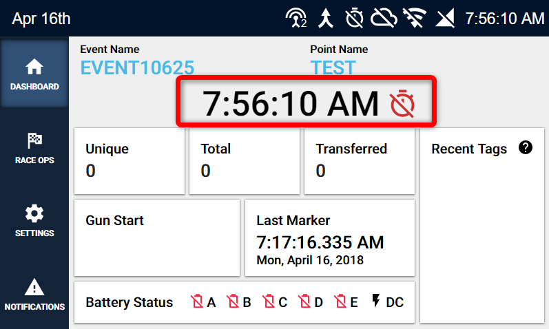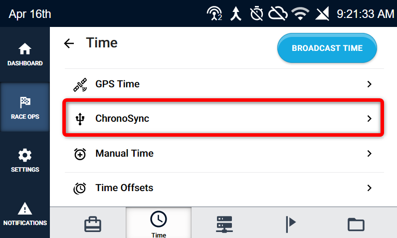 - On the main screen of ChronOS, tap the clock display in the middle of the screen. This will take you to the Race Ops > Time menu.