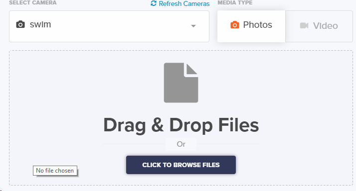 Once you've selected a Camera, you can either drag and drop a folder into the panel below or click the CLICK TO BROWSE FILES button and use your computer's file explorer to locate the images.