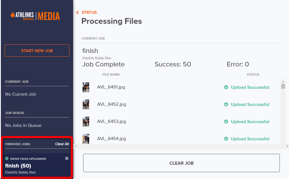 To start uploading, open the Media Uploader and click the START NEW JOB button.
