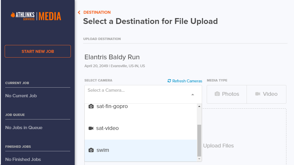 Select a Camera and Upload Files