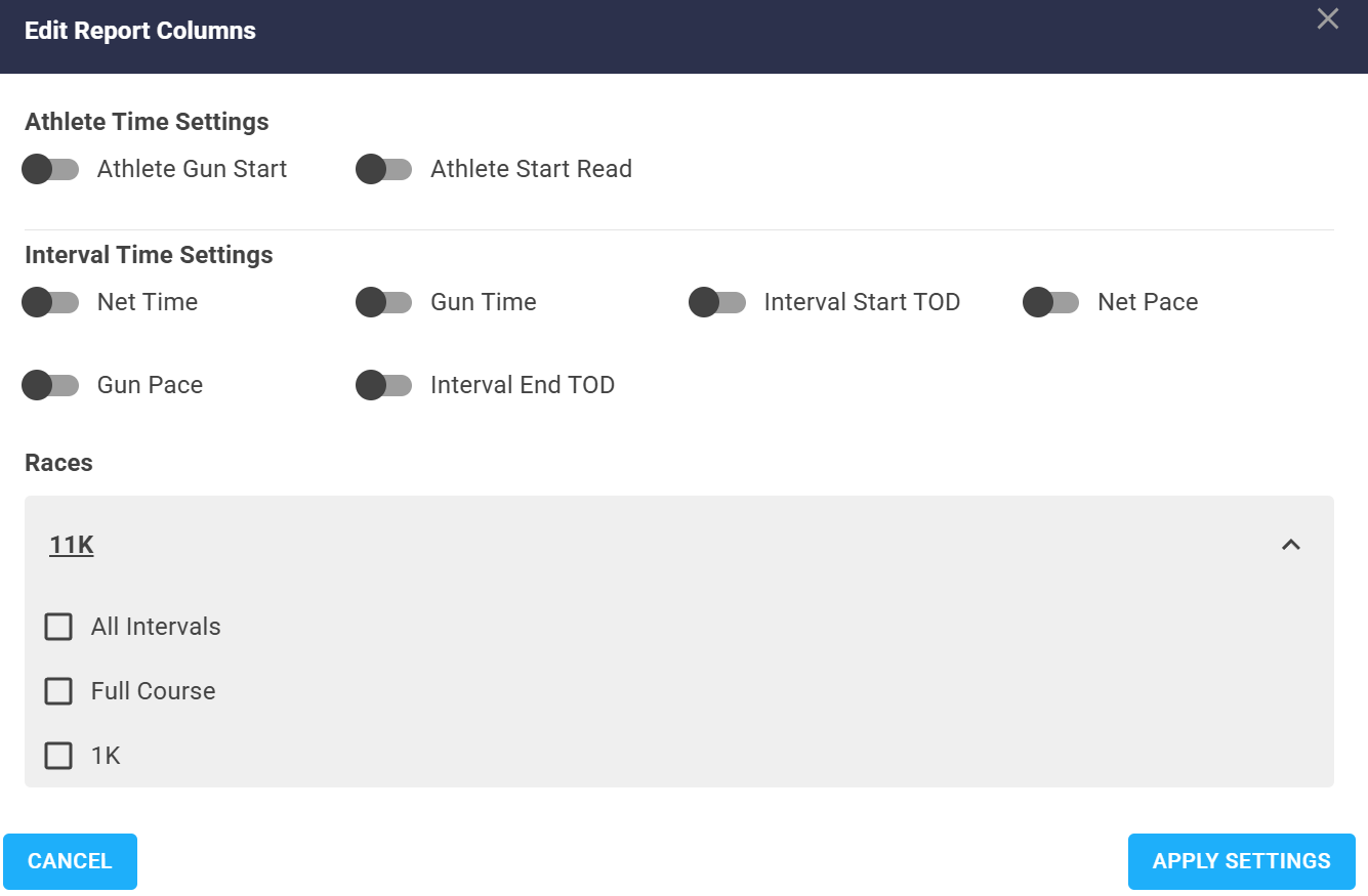In this case, any athletes that have nothing but invalid reads at the start of the 11K are identified when the rule is run.