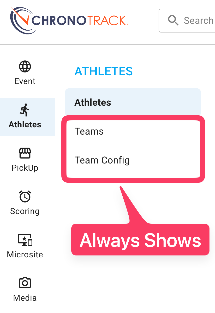 Teams and Team Config options are now always shown.