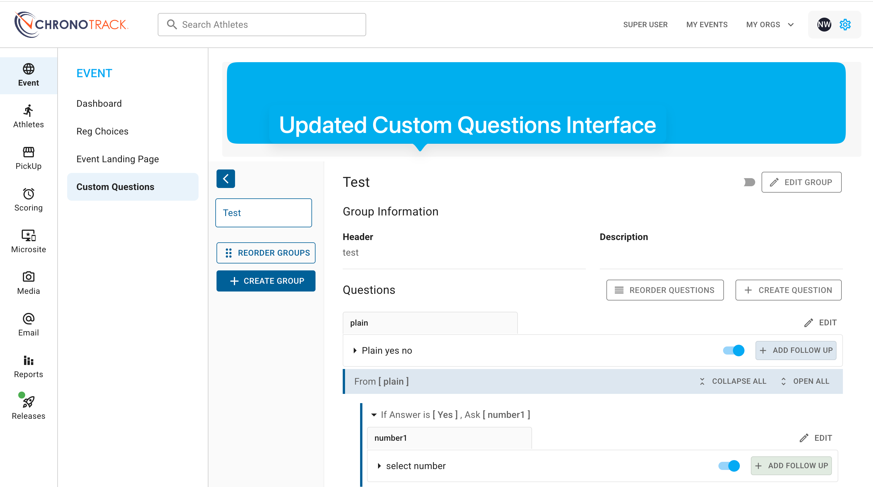 - 2.0 Custom Question can be found under the Event Top Level Navigation